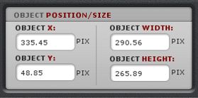Once you've placed and sized an object using the mouse you can also refine these settings with the Properties Bar, either by setting the number values for size and position (distance from top left corner of workspace) directly, or by using the blue arrows to fine-tune them.