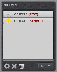 Note: moving an object above another on the list, will also put it on top of the other in the Working Panel. This is useful to control how elements of your logo overlap.